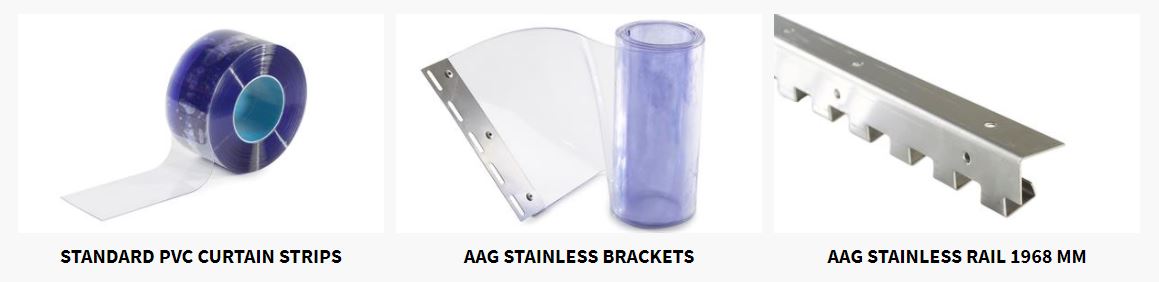 AAG PVC kardinad tarnitakse kas komplektina koos rööpa ja klambriga või tarnitakse jooksva meetri kohta. Ribasid on saadaval laiustes 200 mm, 300 mm ja 400 mm ning ukse või värava sissepääsu ette või sisse paigaldamiseks on kaasas universaalne rööp ja roostevabast terasest klamber.